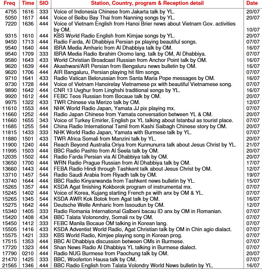 Oggi vi propongo qualche ascolto effettuato in luglio, tanto per farvi venire la voglia di controllare se queste stazioni arrivano anche a voi.